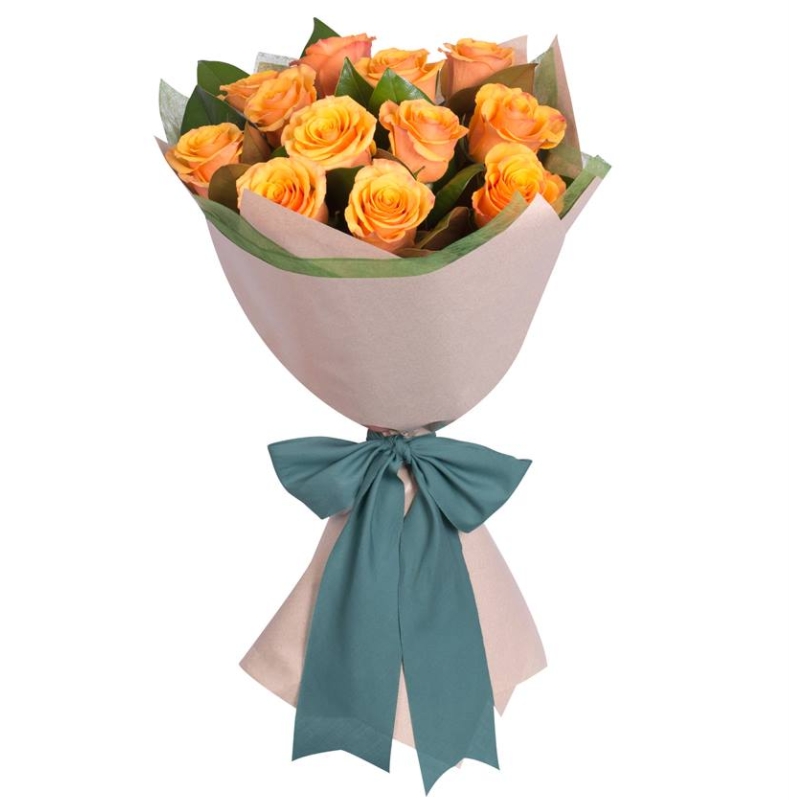 Букет состоит из 15 оранжевых роз, красивая упаковка, атласная лента.